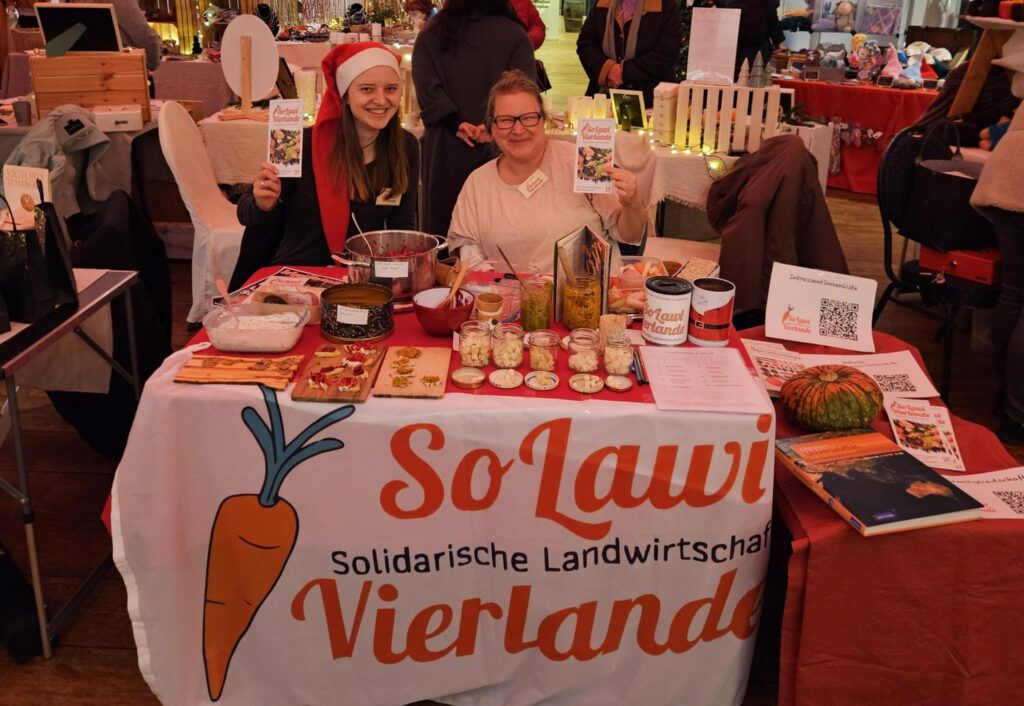 Am vergangenen Wochenende war es so weit: Die SoLawi Vielande war mit einem Infostand auf dem stimmungsvollen Weihnachtsmarkt in den Wein- und Freisenstuben in Ochsenwerder. Zwischen Lichterglanz, Tannenduft und fröhlichem Stimmengewirr durften wir unsere SoLawi, unser Konzept und unsere Werte vorstellen.