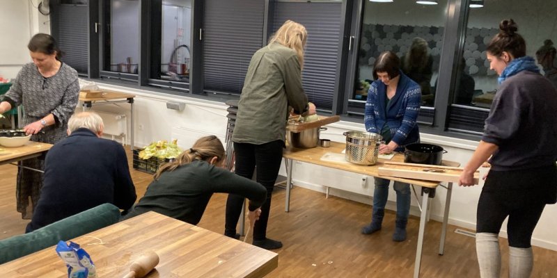 An einem Mittwochabend haben wir mit acht Menschen aus unterschiedlichen Depots in der City ca. 60 Kilo Weißkohlzu ca. 50 Kilo Sauerkraut verarbeitet.Das heißt: den Kohl geputzt, dann mit den tollen großen Kohlhobeln klein geraspelt und dann im Eimer gestampft, bis der Kohlim eigenen Saft schwamm.De...