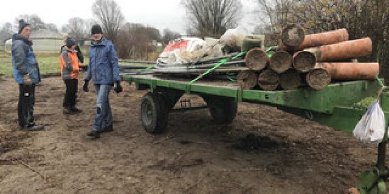 Sigrid, Gerd und Jens haben diese Woche wieder richtig mit angepackt. Zusammen haben wir das „Gerippe“ von unserem Folientunnel in spe auf einen Anhänger geladen und mit Spanngurten dafür gesorgt, dass es auch dort bleibt ;)