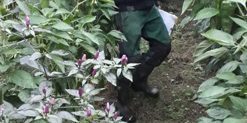 Die Paprikapflanzen sind über mannshoch, unten Ole zum Größenvergleich. Was die wohl noch vor hätten, wenn der Sommer noch we...