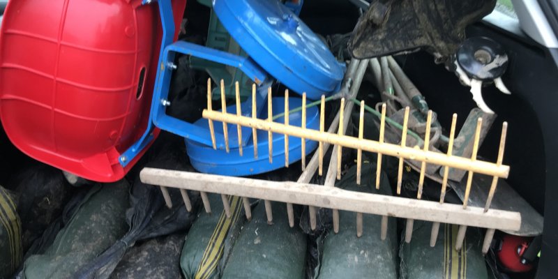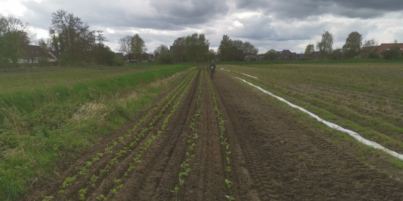 Heute sind wir mit Sack und Pack zu unserem Ochsenwerder Acker getingelt, der Trecker durfte Dünger auf der Pflanzmaschine tragen, der Fahrradanhänger Klamotten, Werkzeug, Vliese, Steffens Auto alles andere.